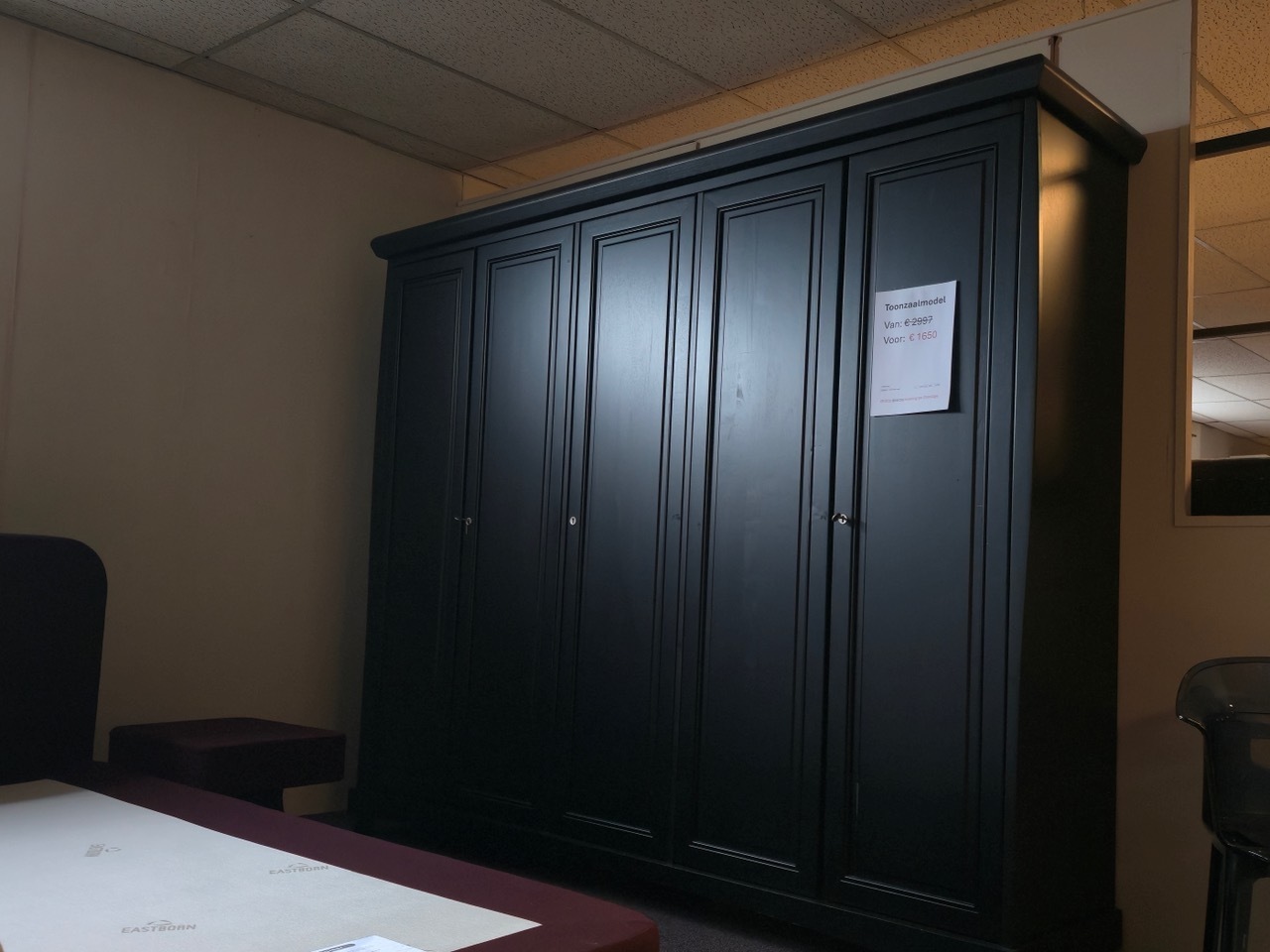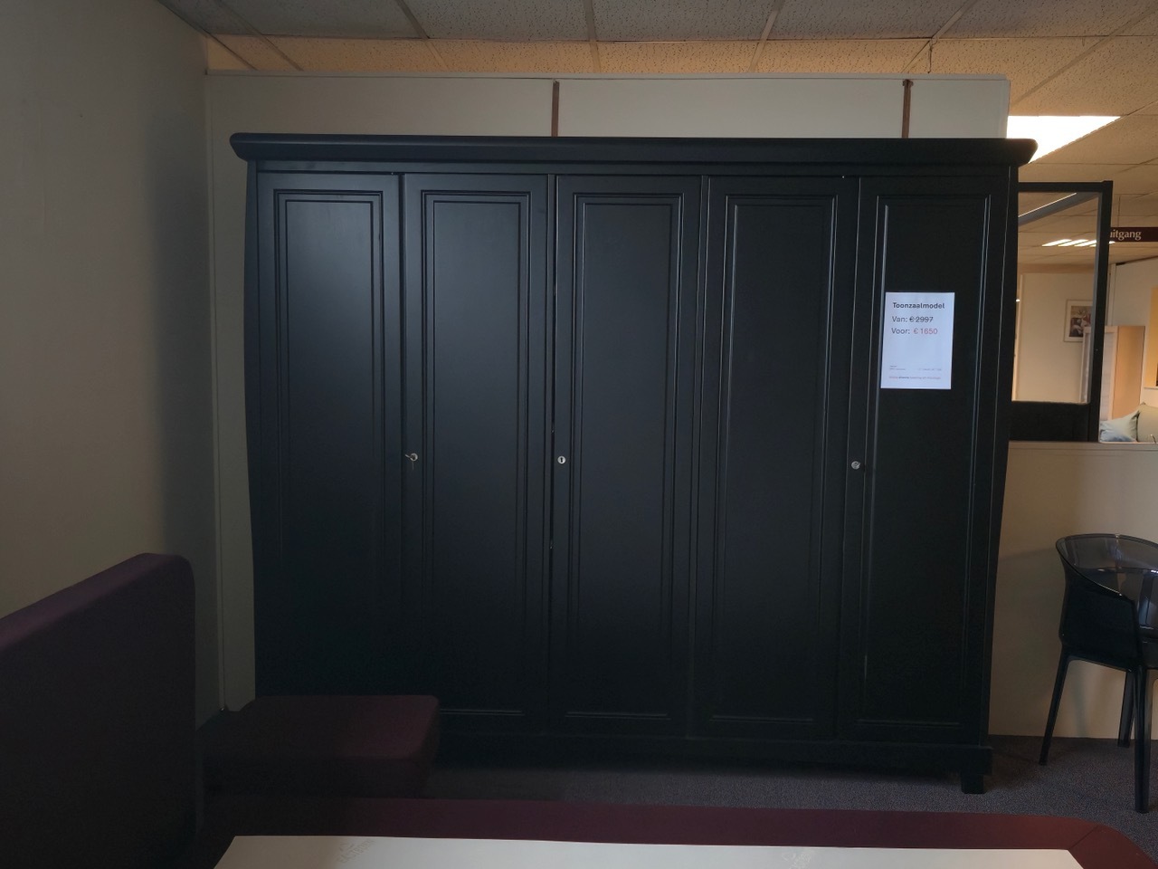 Aziatisch hardhout in tijdloos zwart 5-drs kledingkast br 240xh 207xd 54 cm voor € 2997,- GRATIS GELEVERD EN GEPLAATST