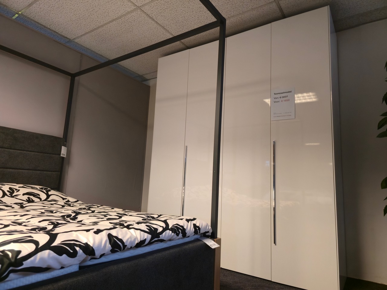 Op zoek naar een nieuwe kledingkast? Prachtige hoogglans kledingkast. in tijdloos wit. Dit model is direct uit toonzaal leverbaar.Productspecificaties